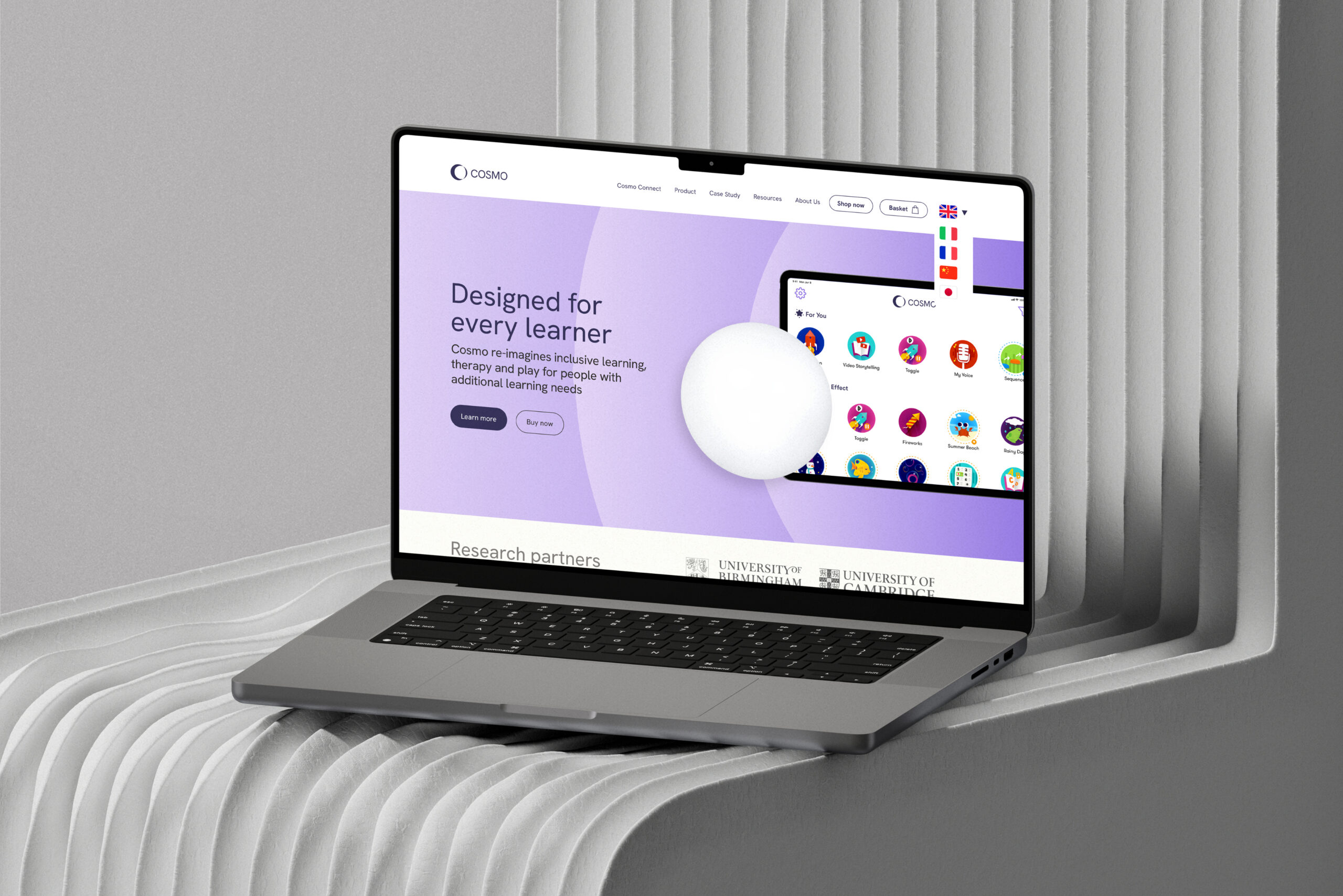 Cosmo creates inclusive hardware and software for learners of all abilities. Renegade delivered their full brand, from strategy and identity to packaging and digital.