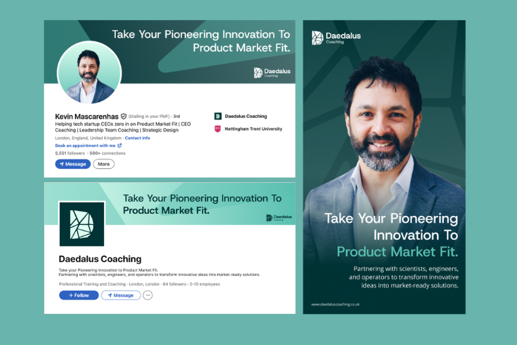 Kevin Mascarenhas, a believer in the power of technology to drive meaningful transformation, needed a comprehensive rebrand for his business. His new brand needed to not only encapsulate the broad experience of the company, but speak directly to its ICPs - letting them know that Daedalus is the ideal guide to taking their pioneering tech to product market fit.
